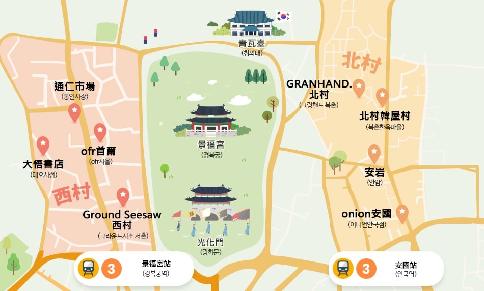 北村韓屋村位於首爾市中心,交通非常方便,搭乘首爾地鐵3號線至安國站(Anguk Station)3號出口,步行約3分鐘即可到達北村文化中心,接著就可以開始你的韓屋村探索之旅囉。