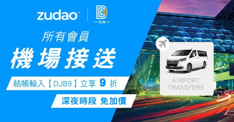出國旅遊享Zudao機場接送 9 折優惠!深夜時段 免加價!