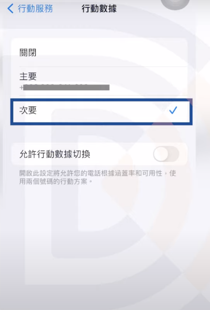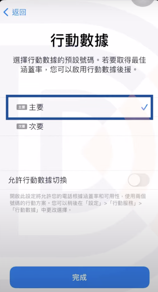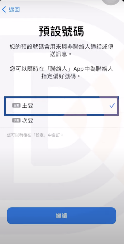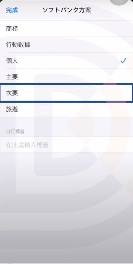 Step3:將標籤從預設的標籤改為「次要」,也可自訂標籤(可視個人習慣設定名稱)——勾選主要(預設號碼)——勾選主要(iMessage&FaceTime)——勾選主要(行動數據)——完成