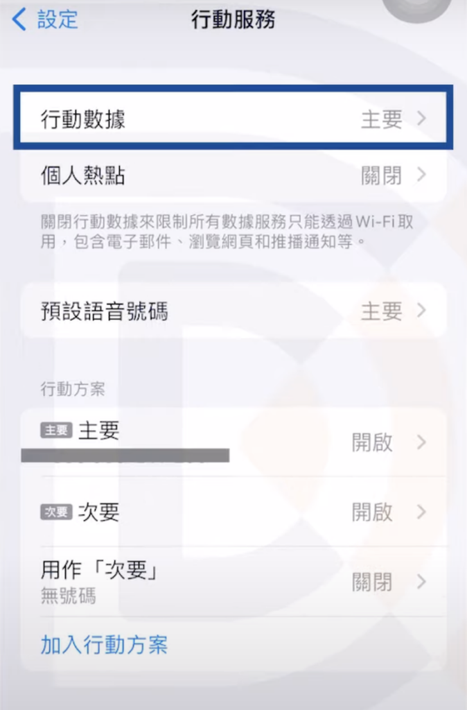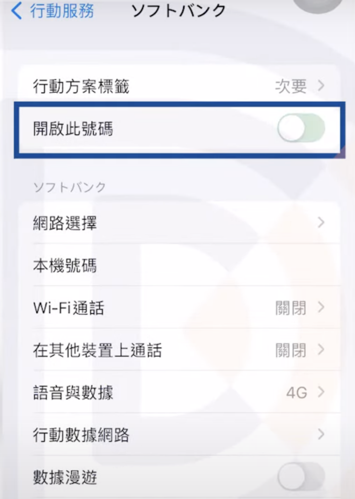 Step1:點選設定——行動方案——選取要開啟的方案——開啟此號碼——回上一頁