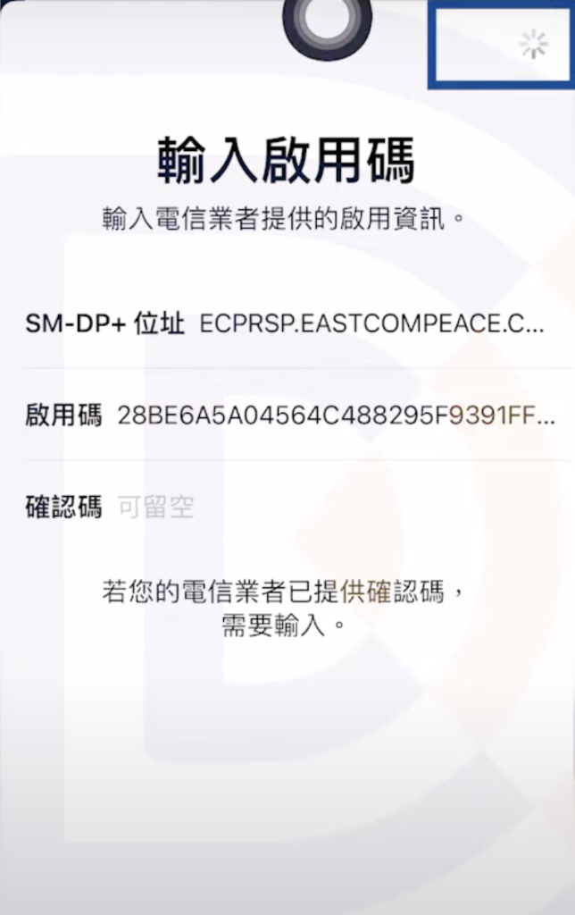 Step3:回主畫面——點選設定——行動服務——加入行動方案——貼上剛剛複製的SM—DP位址——回到信件複製貼上Activiation啟用碼——下一步
