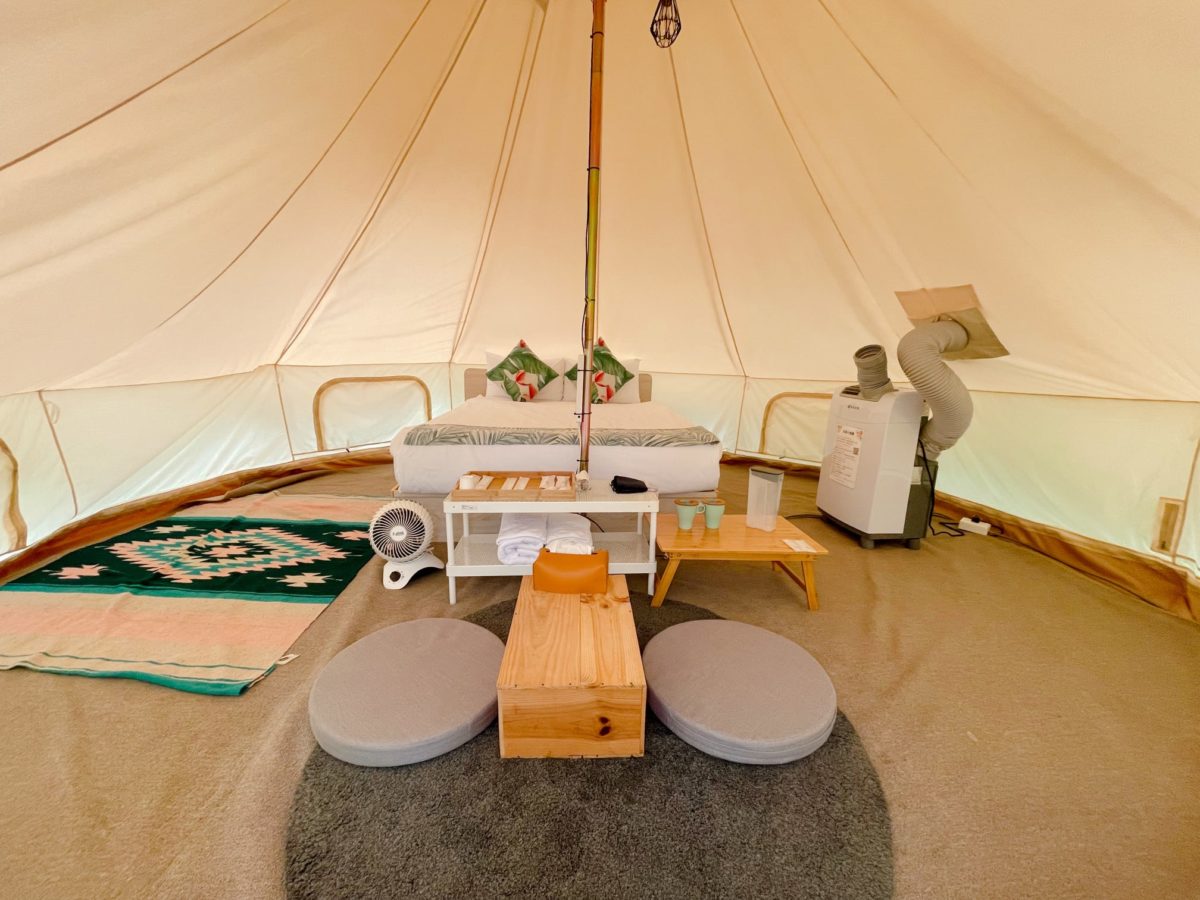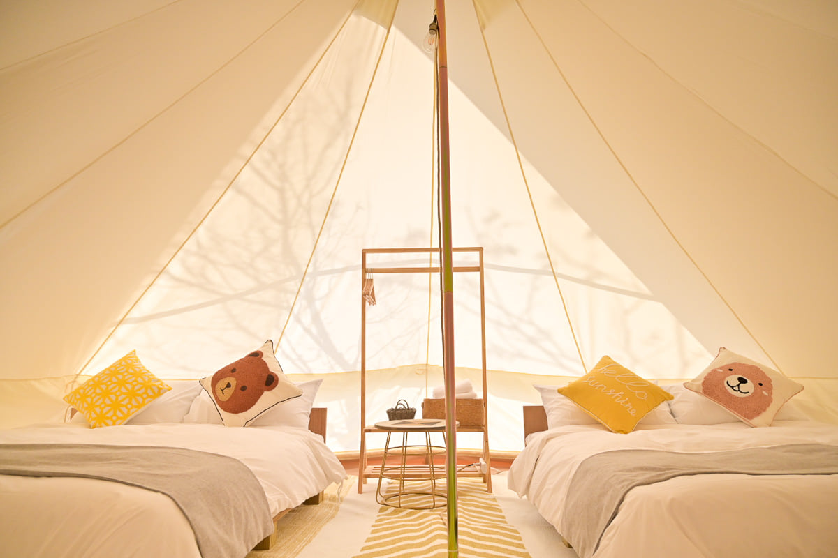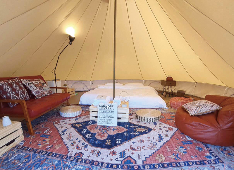 宜蘭「東風綠活」主打有機栽種的芳香植物,連沐浴用品都使用草本精油,貫徹天然有機的目標。園區帳篷則依照人數分為三種類型:雪花村 2~4人帳、森與夢 4人帳、精靈 6~8人帳,三種帳篷皆包含天幕、桌椅、海棉床、睡袋、枕頭、地毯、帳內外照明和延長線設備,雪花村不含早餐,森與夢、精靈都有含早餐,需要烤肉的話都可以另外向園區加購非常方便。東風綠活的CP值很高,因為價格不分平日或假日,價格全年統一,真的是非常佛心,不會因為假日或是連續假期荷包又要減少太多,而且園區主人常常會將帳篷位置做更換,讓你下一次再來住的時候,能體驗不同的露營風景,不會有一成不變的感覺。