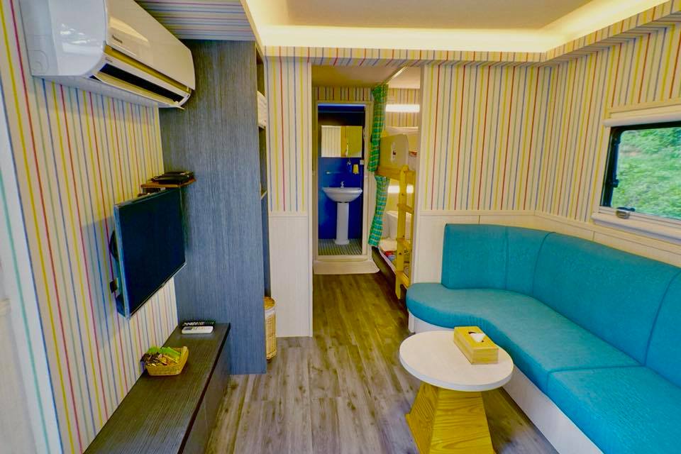 如果是露營新手或是想體驗大自然露營,但是又擔心要和別人一起使用公共廁所的人,那露營車露營一定非常適合你。「苗栗 斑比跳跳」是以豪華露營Glamping為主軸的露營區,座落在苗栗三灣,2021夏天全新開幕,主打一泊四食,提供下午茶、晚餐、宵夜及早餐,住進來直接讓你吃到飽不用擔心還要自己煮,除了吃得好之外,住當然也要更好,使用隔音、私密性更好的露營車取代帳篷,房內提供一張雙人床,與一張上下舖雙層床,同房最多可睡4位大人,設備一應俱全,幾乎媲美星級飯店等級一點都不誇張!走入斑比跳跳就是要過著極致享受的露營生活,一起用露營創造人生美好回憶吧!