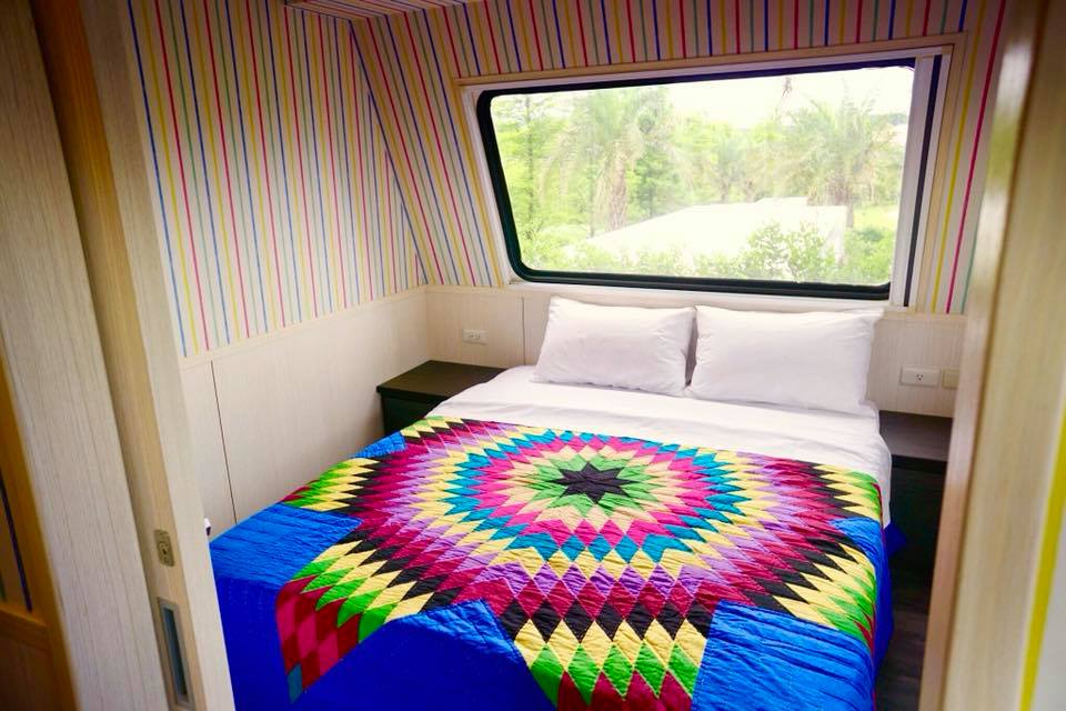 「金山皇后鎮森林 風車House露營車」用世界旅行設計了五種不同主題(嬉皮騎士、北非遊牧、吉普賽吟唱、印加花園、海盜飛行日記),二種規格(2-3人小拖車、4-6人大拖車)露營車款,每一帳露營車各自獨戶,旁邊附設一停車位,還享有獨立露天溫泉湯池、獨立風格庭院,完全享有專屬獨立空間,真的是五星級的享受。庭院內園區也貼心附設小冰箱 、2 個瓦斯爐和露營野炊專用餐具,利用這放鬆的時刻,與同行渡假的家人、朋友泡一杯咖啡或茶,親手製作佳餚,抬頭仰望星空,一起放空的享受這樣的渡假模式。