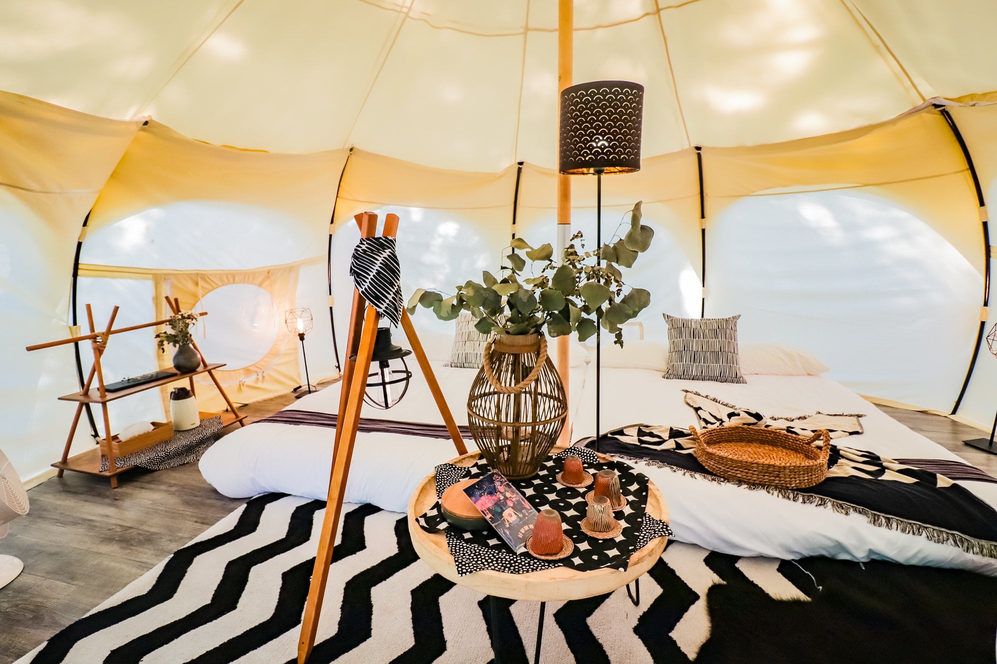 奢華露營的代表「新竹 野漾莊園」,佔地破萬坪,一年四季山中都有不同的風貌,春天的油桐花、螢火蟲,夏季的戲水,秋冬的落羽松,初春滿山的櫻花,讓旅人們融入自然的美好。營區內有三種房型:優雅夢幻的豪華帳棚、喚起兒時童話的樹屋以及日式木造建築的合掌屋,每種房型均提供獨立衛浴,並提供精緻餐點一泊四食,讓賓客無需煩惱三餐的問題,豪華露營就是要有舒適的睡眠空間、輕鬆放空的環境以及儀式感的精緻餐點,來到野漾莊園,輕鬆享受一場高質感的舒適豪華露營,一起遠離塵囂,親近大自然吧!