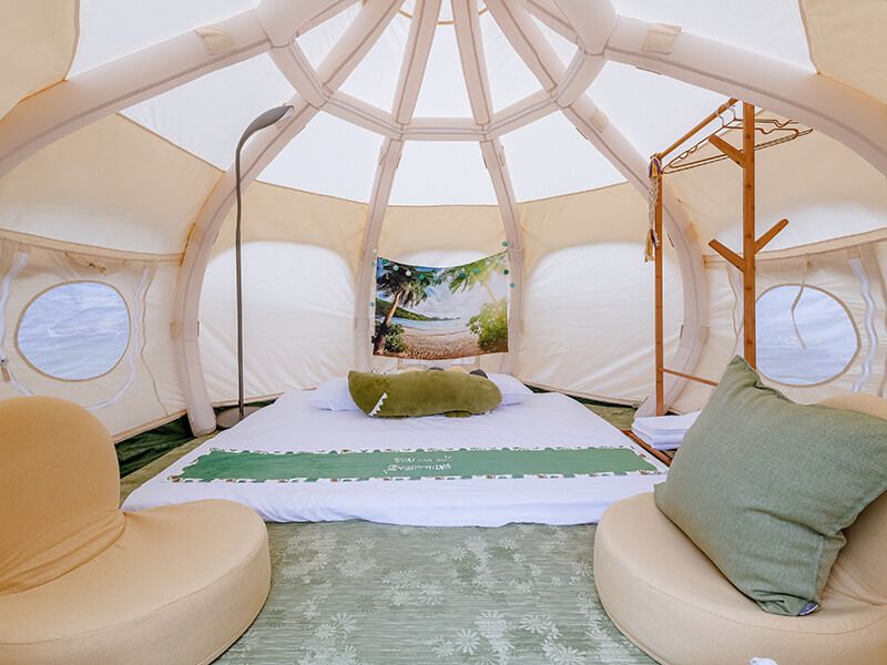 位於全台最北端的懶人露營區「半島秘境」,坐落於北海岸的獨特半島地形,園區鄰近白沙灣海水浴場以及電影「不能說的秘密」場景 麟山鼻步道,一眼望去三面環海,整個被海包圍,非常的療癒人心。園區提供「經典神殿帳型」帳內舒適寬敞,高度連成人都能站直。白色的帳面典雅,是眾多國際帳篷酒店也採用的外觀風格,材質由科技棉製成,冬暖夏涼且能保持乾燥與舒適,帳篷內包含獨立筒床墊、高級羽絨枕被躺椅、休閒桌,園區都幫大家準備好囉!想要遠離都市塵囂,請帶著一顆放空耍廢的心,來半島秘境貼近自然,體驗奢華露營的樂趣吧!