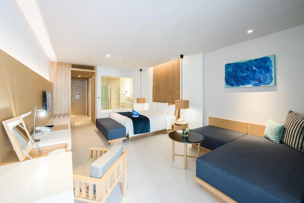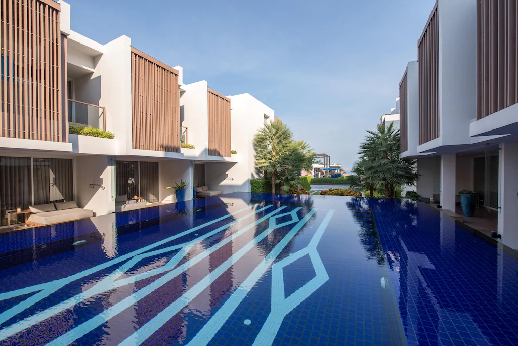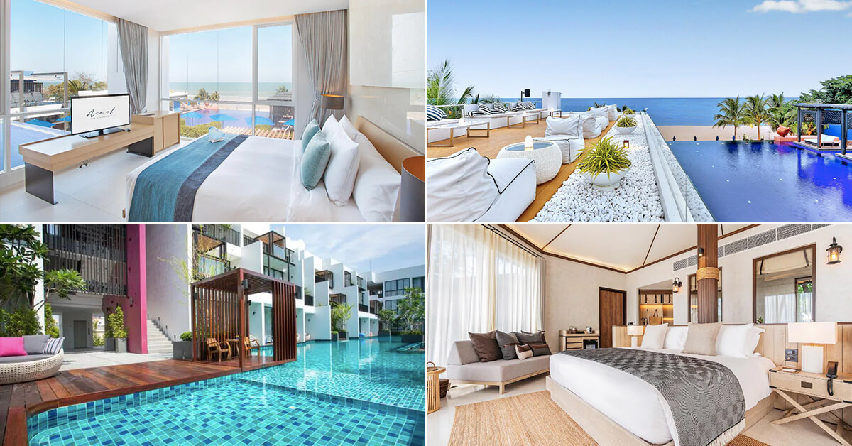 Vala Hua Hin – Nu Chapter Hotels在2020年開幕,位於七岩,住宿鄰近機場且坐落在海灘上,愛與希望之宮是這裡著名的地標,開車大概15分鐘內即可到達,這一代的自然風光則可以在七岩海灘和華欣海灘欣賞得到。