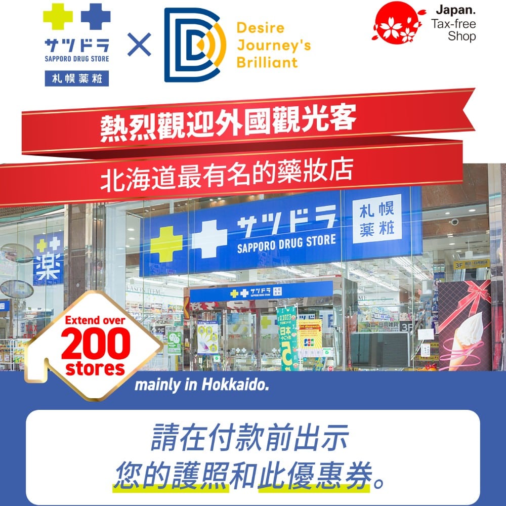 雖然現在日本匯率非常低,是個非常適合到日本購物的好時機,不過能省則省,DJB幫大家和日本知名連鎖藥妝店舖「札幌藥妝」爭取到免稅10%+優惠5%的折扣優惠,讓大家的荷包更飽滿。使用方式非常簡單,只要在結帳前出示護照和DJB&札幌藥妝合作的優惠券(DJB優惠券下載),就可以享有免稅10%+優惠5%的優惠,一起來拯救荷包吧!