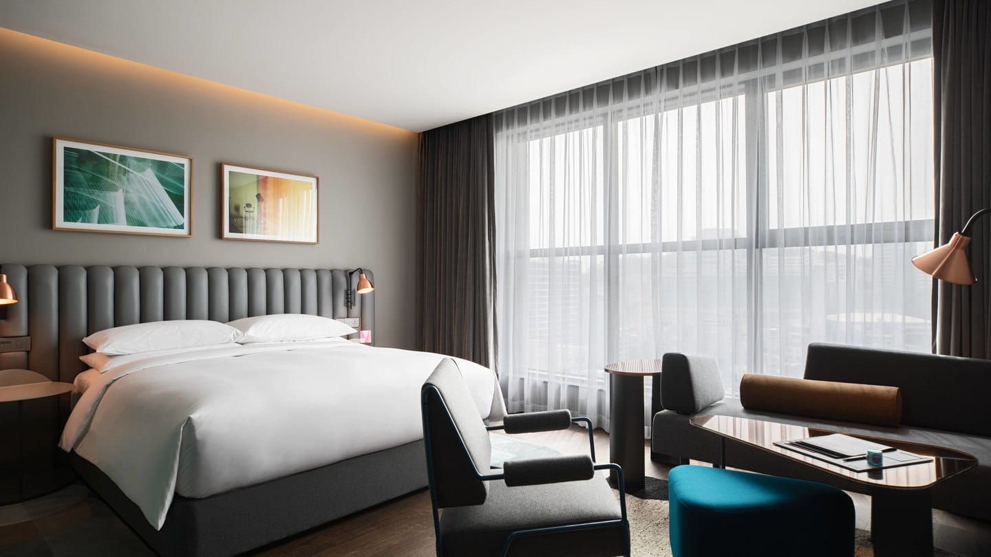 離弘大入口站9號出口步行5分鐘,Marriott集團旗下的5星級酒店,酒店與世界各地的藝術家合作,每間房都是獨一無二的風格,酒店除了還有米其林主廚餐廳、藝廊和許多精品店,最吸引人的就是頂樓Side Note Club,小酌還可以一覽首爾夜景,也是首爾目前最紅的ig打卡景點。