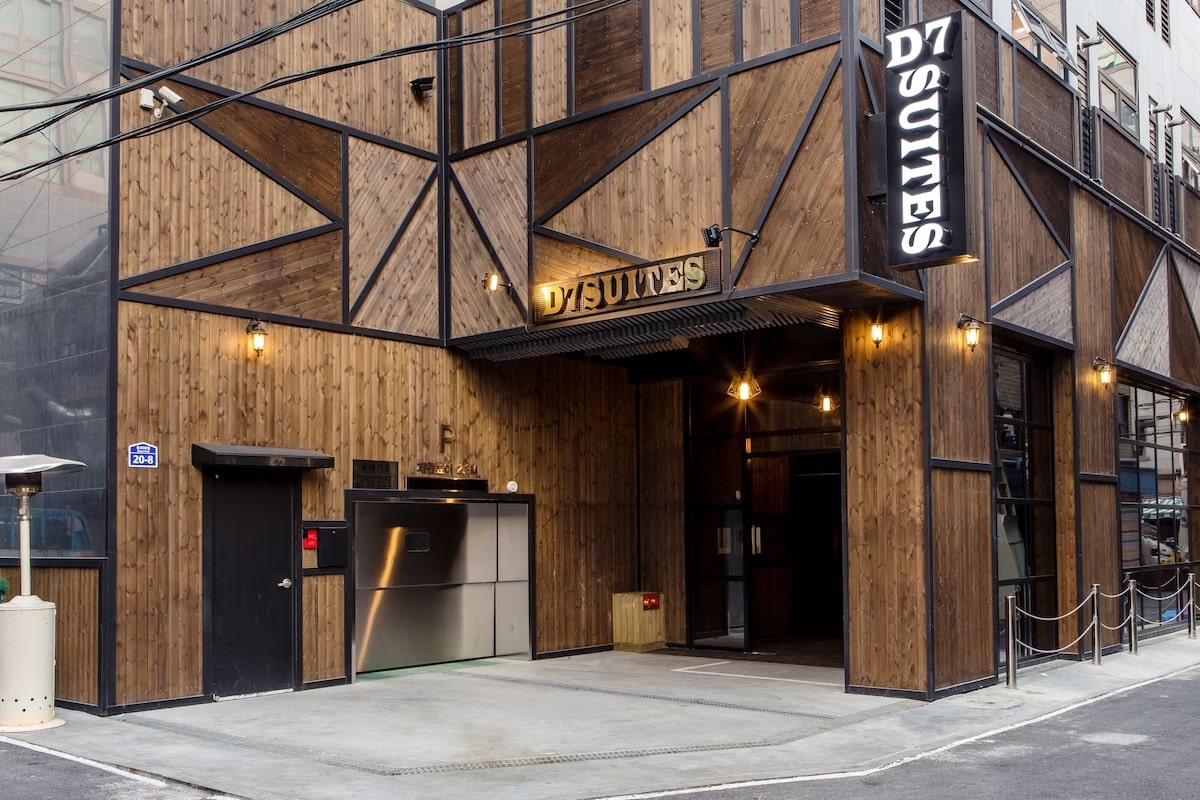 D7 SUITES是2014開幕的飯店,地鐵東廟站4號出口4分鐘到達,飯店的裝潢採時尚簡約設計,由於在巷內所以房間蠻安靜。臨近東廟前站(地鐵1號線和6號線)和仁川機場豪華巴士站,走路2分鐘到達,前往著名的購物街東大門,走路5分鐘可達,交通非常方便。